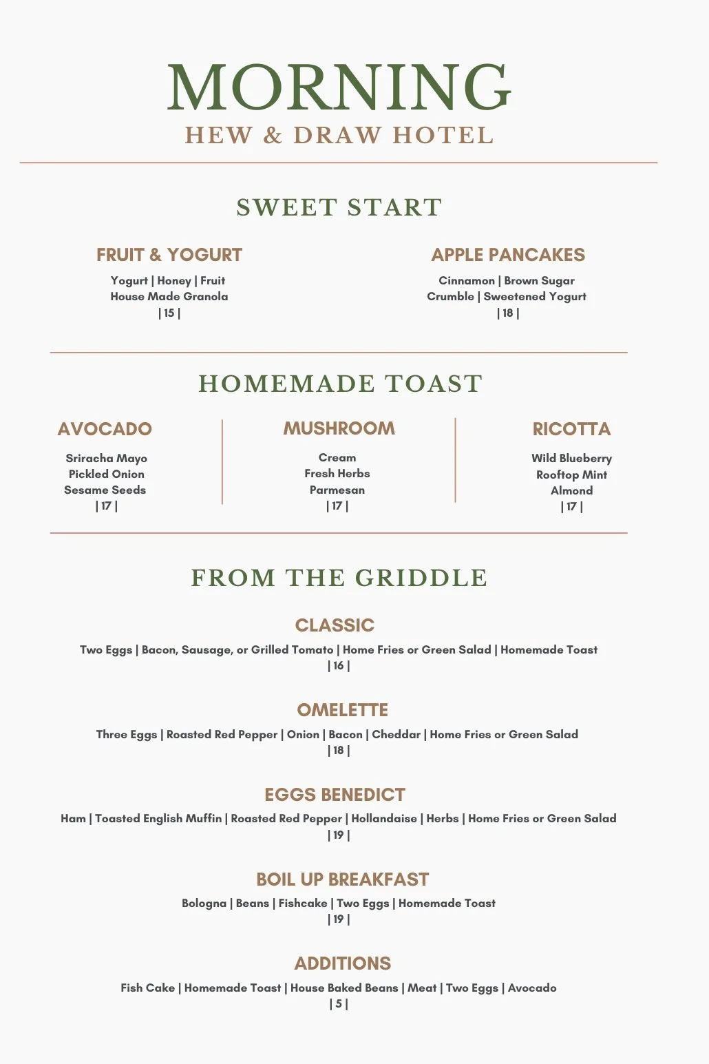 Breakfast is complimentary for all our guests at the Hew & Draw Hotel.